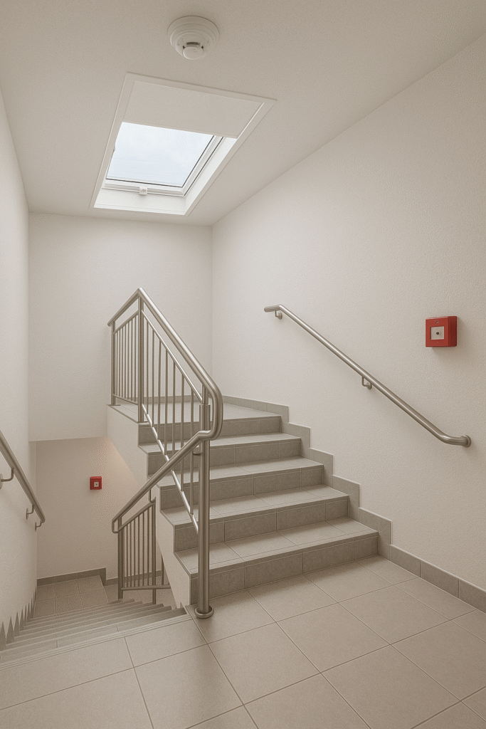 Projektujemy i montujemy systemy oddymiania grawitacyjnego i mechanicznego klatek schodowych, zgodnie z przepisami techniczno-budowlanymi.